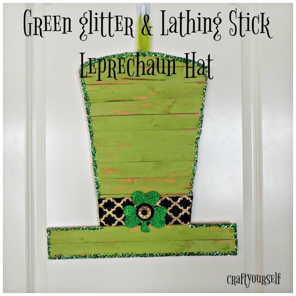 I LOVE how DIY’s like this. I love how this Green glitter Lathing Stick Leprechaun Hat turned out. What a fun craft for St. Patrick’s Day.