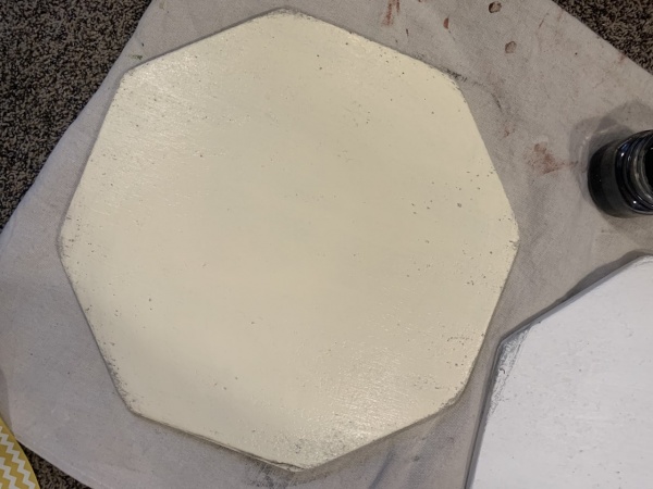Once your board is cut then you will paint the board an off white color and lightly sand the edges to give it a bit of rustic look.
