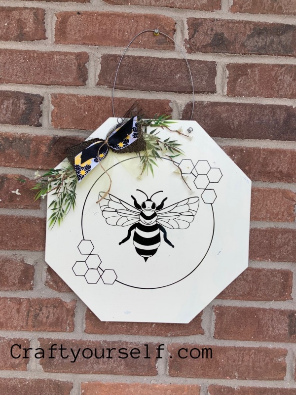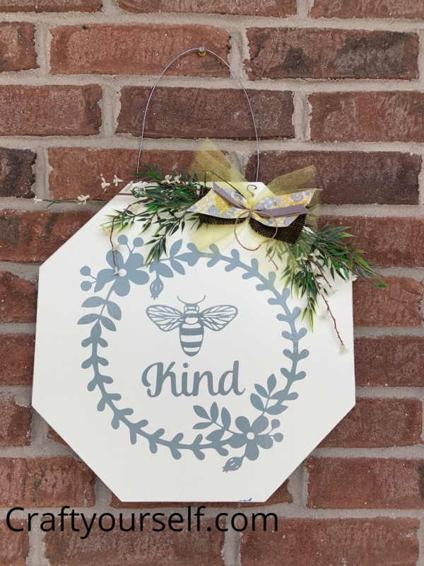 You can drill holes in the top and pull jute through to hang the sign or use a frame hanger on the back of the wood. It is whatever you choose! Embellish the top of the sign using cute ribbon, flowers, netting or whatever you like!