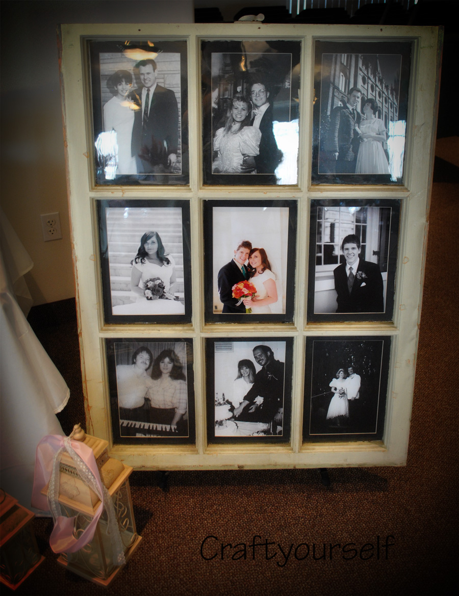 This window was a classic.. It included pictures of the bride and groom and both of their parents wedding pictures and both their sets of grandparents pictures. Loved the history in this piece. Mike matted each picture.