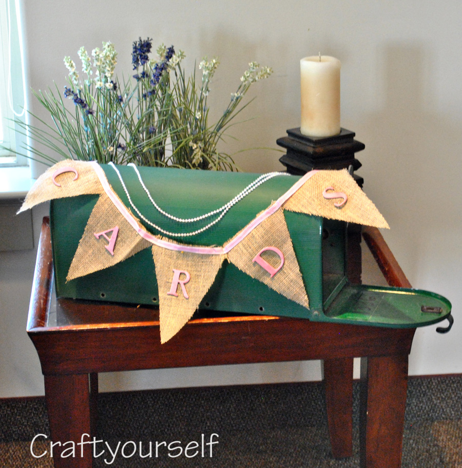 The next picture has a lot of meaning for Joey and Alex. While Alex was serving his mission for 2 years there were a lot of letters that came in and out of this mailbox. Joey’s dad ripped it off the stand and gave it to them to have at their wedding! We made a “cards” banner out of burlap and draped it over the mailbox. What was cute is people put cards in the mailbox and at the end of the night Joey and Alex took the whole mailbox with them to take on their honeymoon!