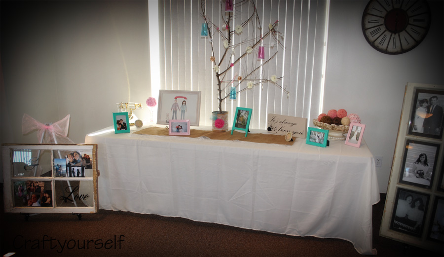 This was her memory table – Pictures of her and Alex on their special day and throughout their courtship. The old phone came from my daughter Maeli’s room. Along with some of the cute Shabby Chic’ décor.
