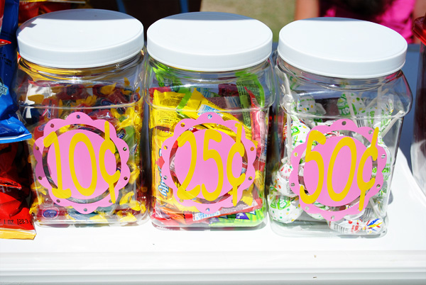 I also purchased some clear plastic containers at Wal-mart and added vinyl on the front for the prices of their candy. The kids have fun reaching into the containers to pick out their treats.