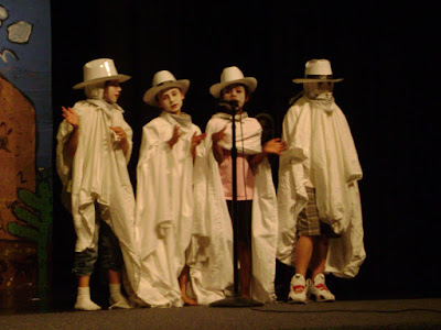 The musical took place in Texas in a small town. There were farmers, cows, field mice, lizards etc. etc. (you get the picture) a huge storm comes & destroys the town but all the people & animals are safe. The people of town Gurry decide to move to another town to start their lives over. But when they get to the other town they realize it is a ghost town & has been taken over by ghosts (Maeli was one of the ghosts) To decide who is going to live in the town they did a game of rock, paper, sissors. Guess what?? It was a tie so they choose to all live together in harmony.. The end!
