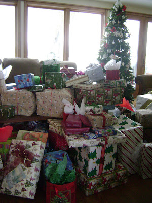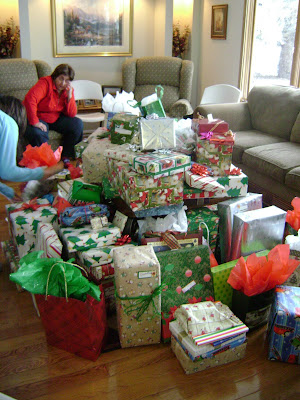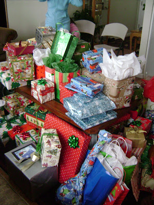 Here is part of the gift line.. it was pretty funny & the kids thought it was great fun to handle all of the presents like that.