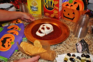 Jen won the creepiest treat with this lovely skeleton cream cheese blood dip! mmm it was a hit and very tasty!