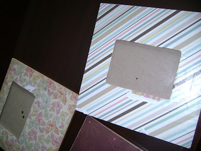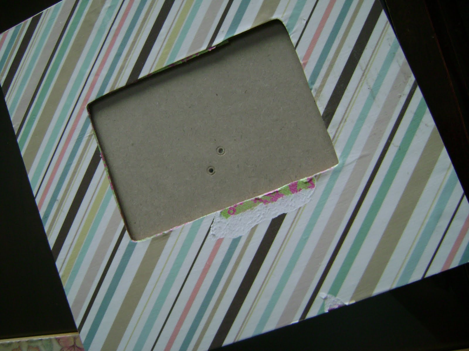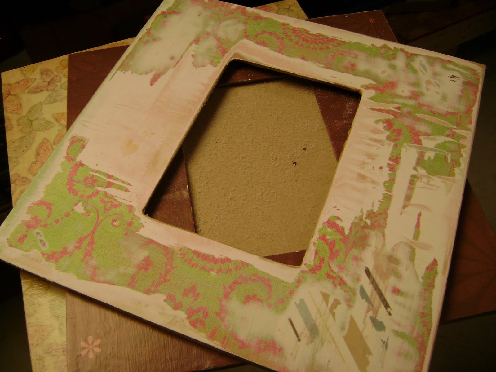 I peeled back the first layer to find yet another layer. Then just tore back the corner to reveal probably 3 more layers of scrapbook paper and mod podge. Coated on the bottom and the top. So I tried to strip the frames and had ZERO luck.. that paper was NOT coming off.