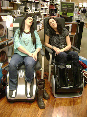 After all the shopping and eating we were worn out! oh and my sister wore hooker boots that were making her feet ache terribly!!!