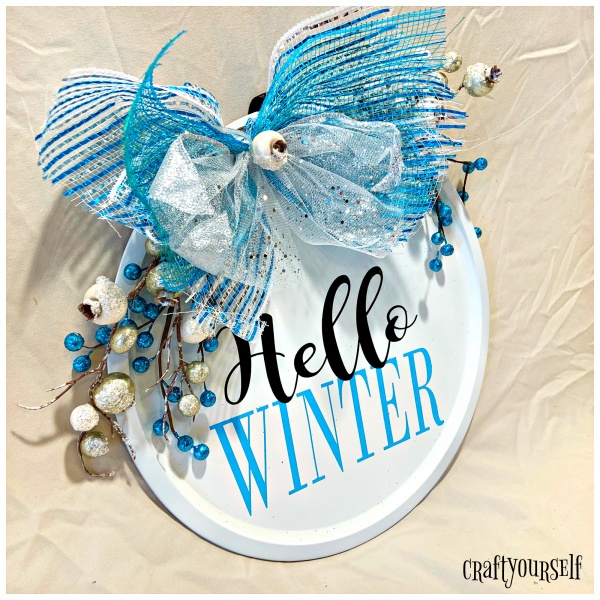 Winter is in full force at my house and the ground is covered in snow! After the holidays I tend to get the “blues” so a few years ago I decided it was time to add some Winter type decor to my home. Of course in the color blue! This Hello Winter metal Wall craft will surprise you at how easy it is and how cheaply it can be made. Last fall we made a Hello Fall one identical to this but instead put Hello Fall and embellished it in fall colors. You can see a more detailed post about it HERE. In the post I just linked to you…