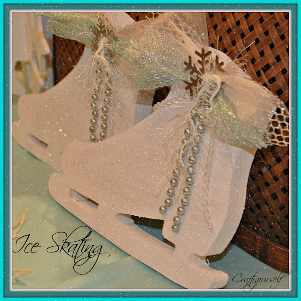 I always feel a little sad after all my Christmas decor is down. I miss the twinkling lights and all of the fun bright colors. So, I want the transition after the holidays not to be so gloomy. I’ve created a beautiful display of snowflakes and ice skates in my home to still keep the winter theme throughout January. I’ve incorporated silver, aqua and winter white into my January. I’ve been looking for some real ice skates throughout the summer at garage sales and couldn’t ever find any. (but I’m not willing to give up yet) So I searched out a cute pattern of Ice skates and found this pattern…