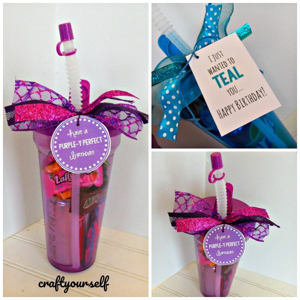 I am always looking for quick and easy ideas for birthday gifts. I recently came across this purple gift idea from fun squared. I really loved the idea of filling up a fun cup with treats and adding a tag with a cute saying. I have several friends, neighbors, and co-works that I like to do a little something for on their birthdays. I knew that I would be mass producing several of these treat cups so, I went to my local dollar store and began the search for cups and items to fill them. As I looked at items to fill the cups I decided that it would be more cost-effective to purchase…