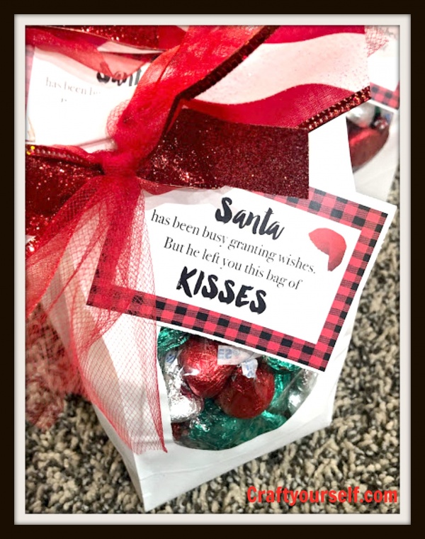 I always try to figure out a Christmas game plan for my neighbor’s & friends a year in advance. The reason I do this is because the sales after Christmas every year are worth watching. I found this cute Santa Kisses Printable from A pumpkin and a princess a year ago! I jumped on the idea and Krystal found Hershey kisses for 90% off after Christmas last year. Making each bag only around .30 cents per bag! I’ve found if you freeze the candy right away it does just fine holding out all year long. Someone asked if the color of the chocolate changed. After inspecting the kisses and determining…