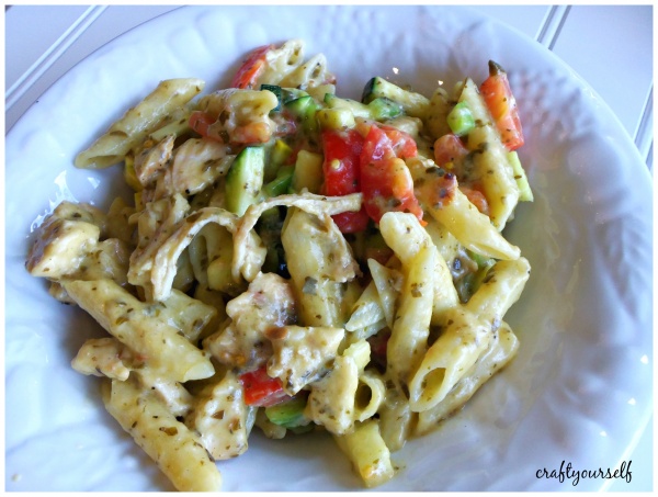 One Pot Cheesy Pesto & Chicken Garden Pasta