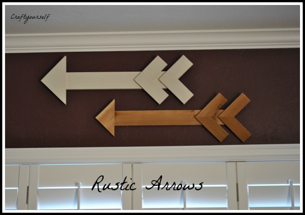 Our garage is always full of scrap pieces of wood. Some of this wood is left over from a project and some wood is still new, never been cut for a project. Some wood is pine, while other is cedar but overall you will always find some sort of wood to use for a craft. This Rustic Wooden Arrows project was on a whim and from start to finish the 4 arrows I made maybe took 30 minutes. The larger of the two arrows is from left over pine wood – That I painted an off white and sanded the edges. While the smaller arrow of the two is out…