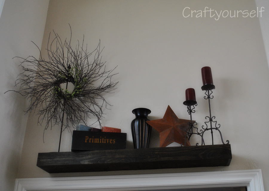 Floating wood shelf I love Shanty 2 Chic and all their creative wood projects. I followed this tutorial on making my floating shelf although I went Longer and thicker on my shelf. I also did not use our Kreg Jig. I felt no need to as all the nails and holes were inside of the base/frame of this project. This project went really fast and was actually really pretty easy. Anything that is uses rough lumber and not much detail goes fast! The frame was up within 5 minutes after cutting the wood. I hung mine above my office room door. I love how sturdy it is and…