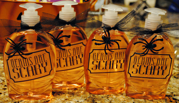 Halloween mesh wreath This year my front porch needed something different. I wanted to coordinate it a little bit more with my Dead and Breakfast sign. So bring in the skeleton’s, spiders, and some black and white! Here is a new wreath I made from my front door. This cost approximately $7.00 total. The super easy, cheap and fast tutorial on how to make a wreath form can be found on Big Bear’s wife. I found the skull heads at the dollar store already glittered! They also light up so if I want to click the switch those little skull eyes blink and light up! The mesh was on clearance…