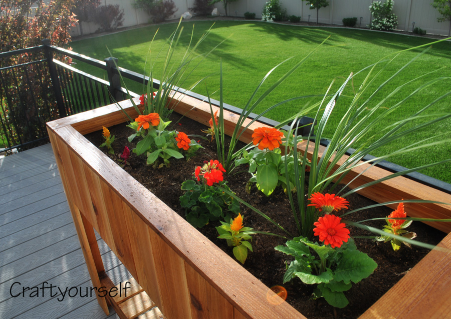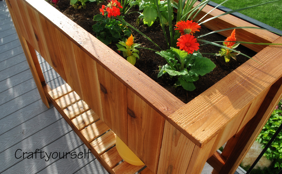 He altered a few things on it. Our’s is longer and taller. I also had him add cedar along the bottom of the inside and then line it with plastic to protect the cedar. He also put 3 to 4 coats of sealer on the planter box to seal it from weather and from discoloring. I am thinking to preserve the wood we may have to do this the beginning of each season. I love how it turned out!