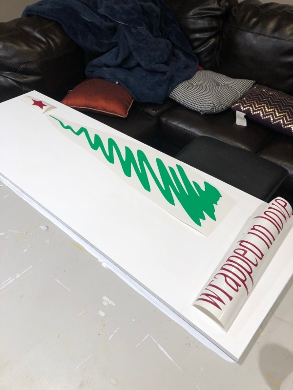 If you flip this Christmas tree family sign and look at the back you would see it is metal! ha! Painting the wood side completely white made if for a great canvas!