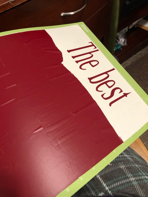 Placing the vinyl with the backing still on makes it easier to know how it will look when finishing. Weeding out the excess vinyl actually goes pretty fast!