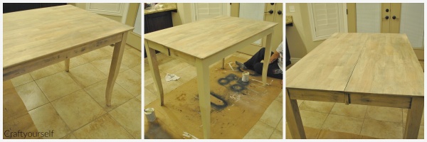 I started out by purchasing some Citri-Strip QCG731 Paint and Varnish Stripping Gel, 1-Quart to remove the paint from my table. Now be prepared as this step is messy but I did like it because it went a lot faster then sanding. Use plastic scrapers and a lot of paper towels for this step.