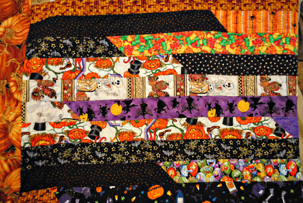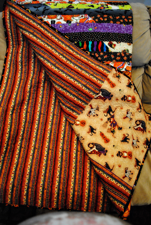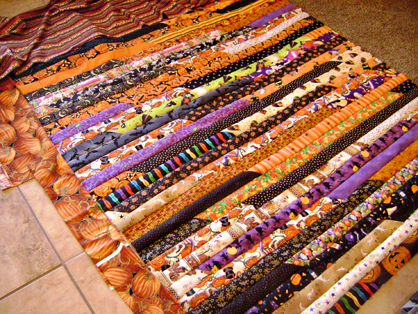 My first quilt!!! I didn’t do it all myself but I did sew a lot more on this then any other thing I have ever sewn. My awesome mother picked up a stash of Halloween Jelly roll fabric at a quilt event of her’s for really cheap over a year ago. I love digging through my mother’s fabric and honestly when I was younger I absolutely hated going into any type of fabric store. I think my attitude is changing.