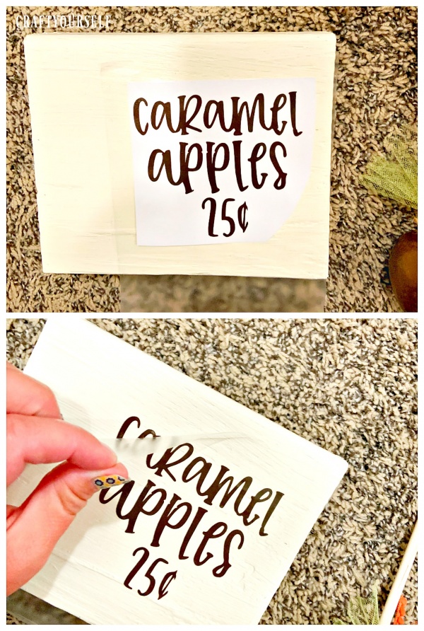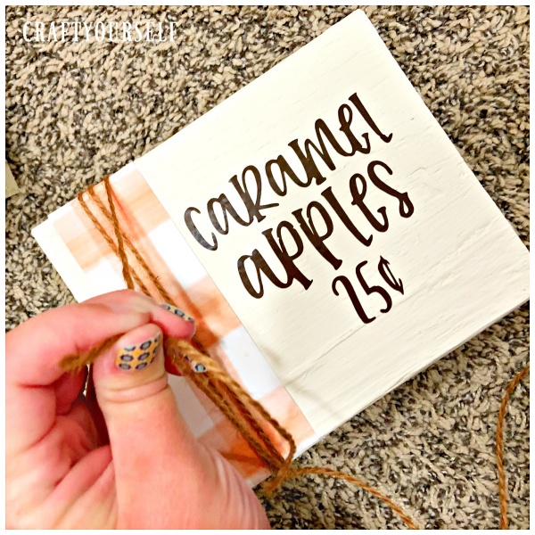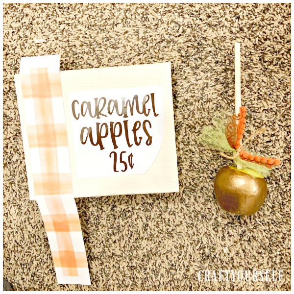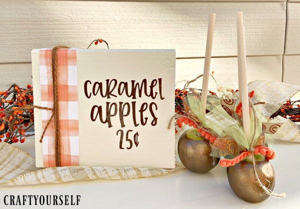 It is exciting to add this fun caramel apple wooden block onto my tiered tray along with my faux candy apples. Who doesn’t love a good gooey caramel apple?