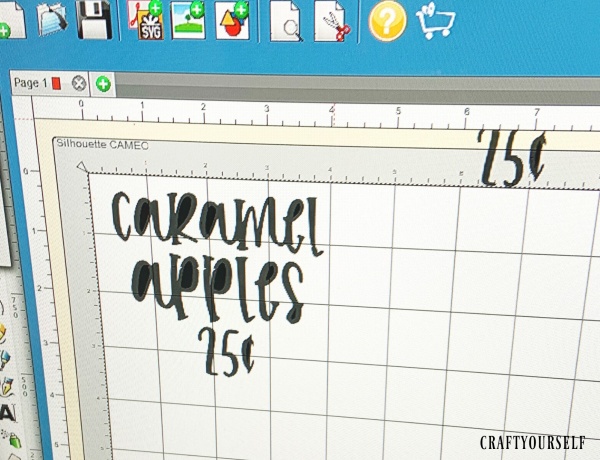 Using your personal cutting machine type in the phrase caramel apples .25, select desired font and layout for your block.