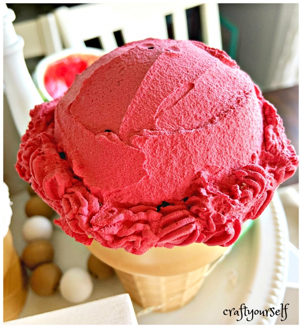 I love finding new things to add to my tiered trays. For the cooler months I have a cute mug with a faux whipped topping in my trays. As summer came along it just didn’t seem like a topped mug fit the seasonal fruits and things I was placing in my trays. I found some cute ceramic ice cream cone bases at the store and knew I needed to come up with a way to make a faux ice cream topper.
