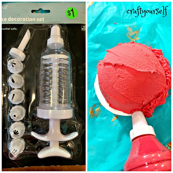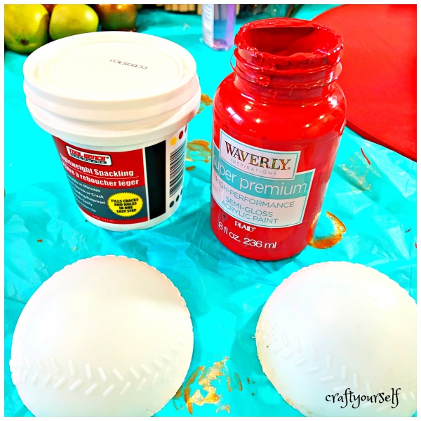 Take your knife and get a scoop of lightweight spackle onto the knife. Place the spackle onto the plastic ball and frost it like you would a cake until none of the plastic ball is showing through. Place lightweight Spackle into your frosting piping bag or tool. If desired You can color the lightweight Spackle by mixing paint in before your add it to the piping bag.