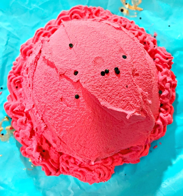 Using the piping bag pipe a ring around the edge of the frosted ball.