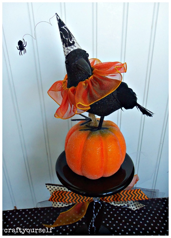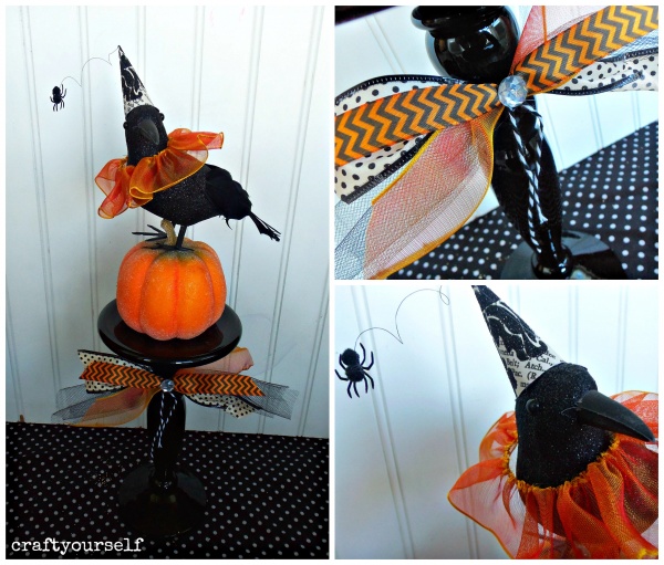 Dollar store pedestal Halloween Crow