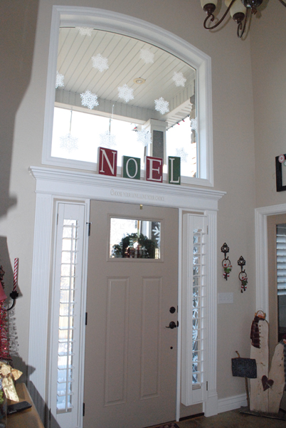 The dollar store really has some cute things if you look close enough. I bought a package of these foam/glittered snowflakes from the dollar store and set out to cover my windows in them!