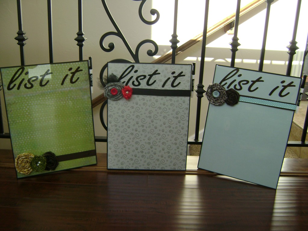 I have seen these all over lately and decided to make a few. I have seen them used for grocery lists, caledars, or just for a Honey do list 😉