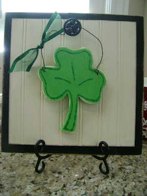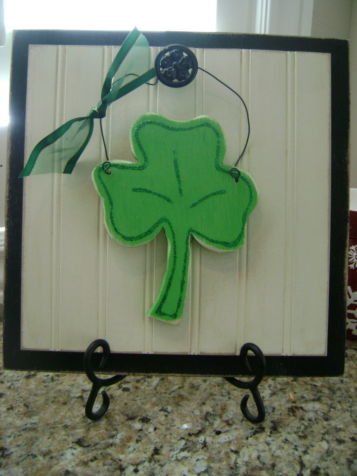 You can cut out the shamrock with a scroll saw then drill some small holes in the corners to fish a ribbon or wire through.