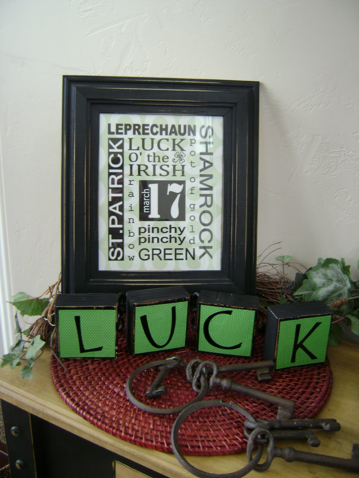 Making some cute “LUCK” blocks and of course my favorite Subway art added to my festive decor’!