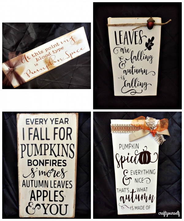 There are so many fun Autumn sayings out there! While we were making gifts for our Halloween party last month, we made several fun fall signs to give away as prizes. One thing I love about fall décor and signs is you can leave them up for 2 months!