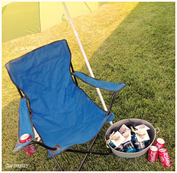 I loaded all of these POWERADE bottles with tags attached into a large tin along with my chair, umbrella, and Coca-Cola. I set up a spot along the sideline and watched the boys practice.