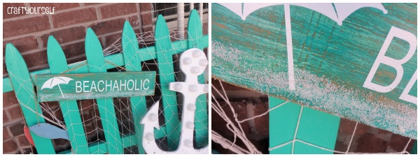 After I got my wooden fish bundle made to hang on my picket fence. I knew that my beach porch still needed more to feel complete. Coming across the idea for this sign that says beachaholic was just perfect! I just couldn’t help myself, I wish I lived closer to the beach. So, I decided to make my own take on the beachaholic sign.