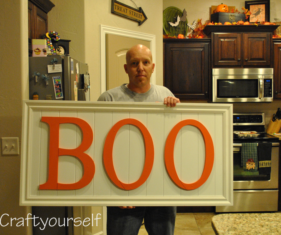 Yes, from start to finish. He figured out the letters, painted them attached them to bead board, made a frame – yep, folks A MAN LOVES TO CRAFT AS MUCH AS HIS WIFE. He is literally the mastermind behind my wood projects.
