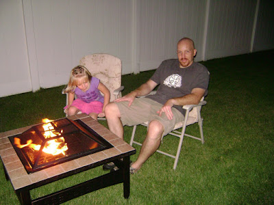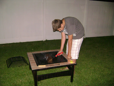 We bought a fun little fire pit – Kaden getting it all lit up & going.