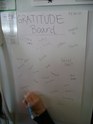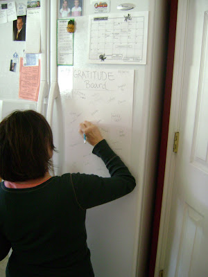 This board usually appears the first of November & stays up until Christmas cards take over the fridge. This board is open for anyone and everyone to write on. This board is a place to write everything that we are grateful for.
