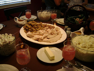 I had to make our own Thanksgiving this year since my MIL was in PA helping Kevin's grandmother. My FIL refused to come (said it wasn't a home without her so he wasn't celebrating). Anyway, I sent a plate of food over to him even though he told me not to (I can be just as stubborn as he is!). He called the next day when he ate it and said it was an excellent meal (he DOES NOT give out compliments) so it must have been TERRIFIC! (Well I think it was anyway, but it must have been even better than I thought for him to call and say something about it AND to tell my MIL also! lol) Now I know I can make my own Thanksgiving meal and it will turn out great! (I was really worried about the rolls!)