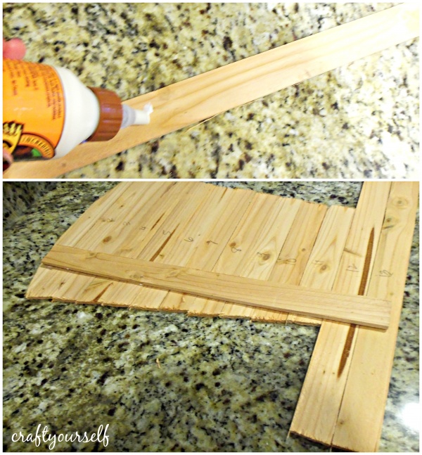 I covered the bracing sticks in wood glue and pressed them on the back of the Leprechaun hat and allowed them to dry.