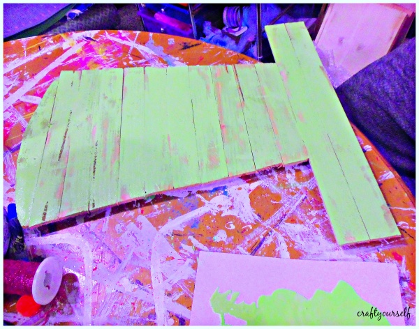 After I cut the sticks I put them back in order to reveal my Leprechaun hat. I also cut 2 other lathing sticks to use as bracing on the back of my Green glitter Lathing Stick Leprechaun Hat
