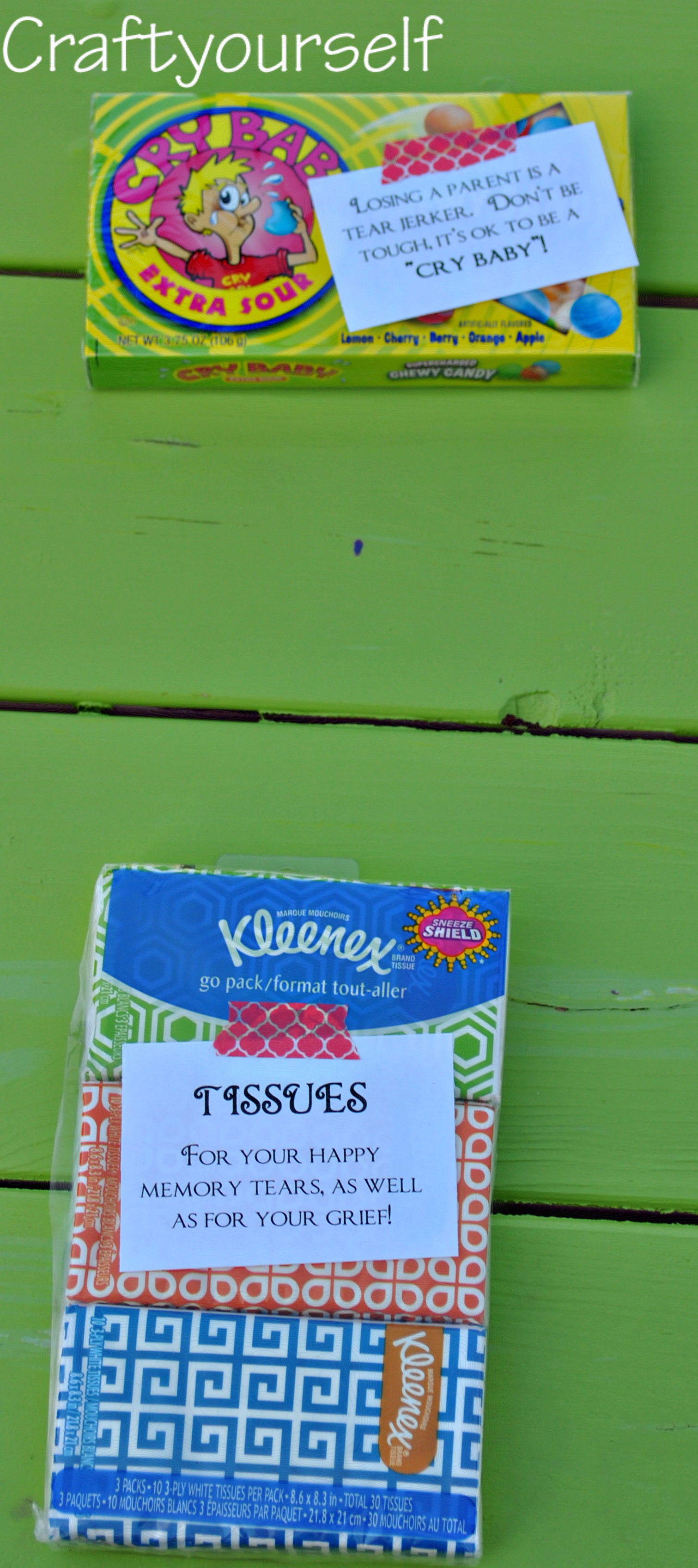 We added sayings to each candy to reflect and emotion of grieving.