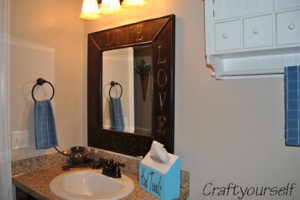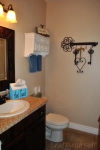 My half bathroom in my home gets used a lot. It is the only bathroom (besides my master bathroom) on the main floor of my home. People do not want to walk upstairs to use my upper bathroom nor do they want to walk downstairs to use my basement bathroom and of course I’m not going to let them use mine 😉 So, I have a half bathroom to accommodate my guests. This is probably the most used bathroom in the house! During the summer time we host a lot of barbeques and this summer even a 3 day family reunion! With all the extra guests I want to keep my bathroom up to par with all the traffic so I took the time to make it a little extra nice for everyone!