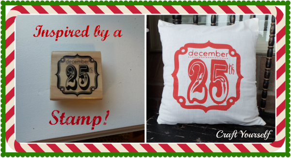 This December 25th pillow was inspired by this stamp. I used my SCAL program to create a stencil, out of freezer paper and then sponge painted it on the pillow cover.