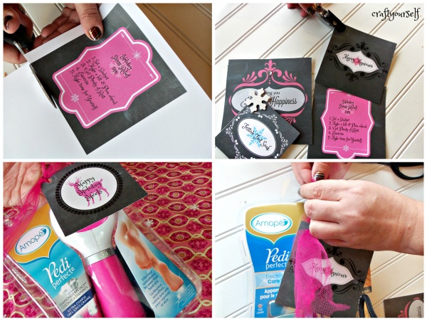 So recently I’ve been thinking about what gifts I could give the ladies in my life such as close girlfriends, sister’s and both my mother and mother in law. I got thinking about how much us women do especially during the holidays! From baking, cleaning and shopping to parties, hosting, wrapping gifts and taking care of all the holiday necessities. Our hands and feet keep us going all day long so of course they need to be well taken care of. Thinking back about my Amopé Pedi Perfect™ Foot file I knew how much I loved mine and that every woman deserves to have one! So I decided that I would create a Holiday Happiness gift basket for each one of my favorite ladies in my life.
