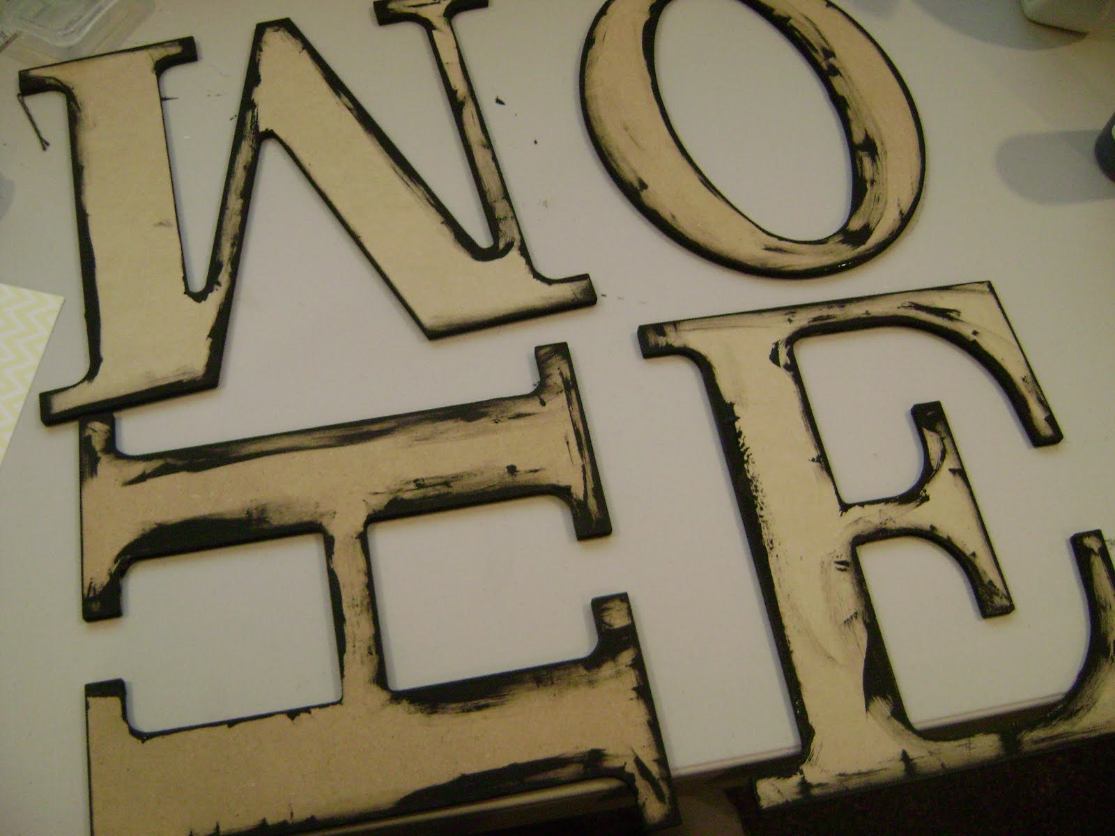 I mod podged the scrapbook paper onto the letters underneath the paper but NOT on top. Once dry I sanded down the top of the paper and the edges to give the letters a more rustic look.