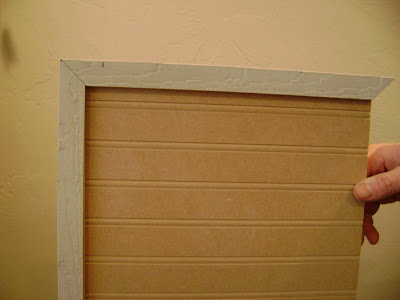 We have quite a bit of lumber and bead board left over from when we built our house so I had Justin measure out the width and length of the board and cut it to size. I then told him I wanted a frame around it and he went to town out on his saw. Here is what he came up with.